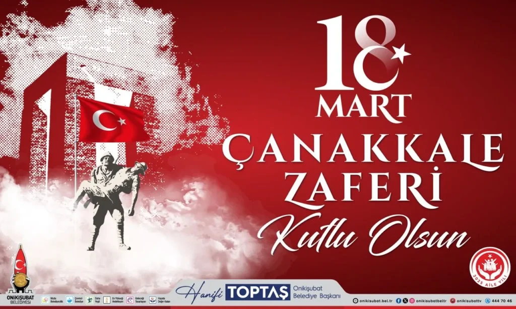 Onikişubat Belediye Başkanı Hanifi Toptaş, 18 Mart Şehitleri Anma Günü ve Çanakkale Zaferi’nin 110. yıl dönümü dolayısıyla anma mesajı yayımladı. Başkan Toptaş, Çanakkale Zaferi’nin Türk milletinin bağımsızlık aşkını, inancını ve fedakârlığını tüm dünyaya gösterdiği bir kahramanlık destanı olduğunu vurguladı.
