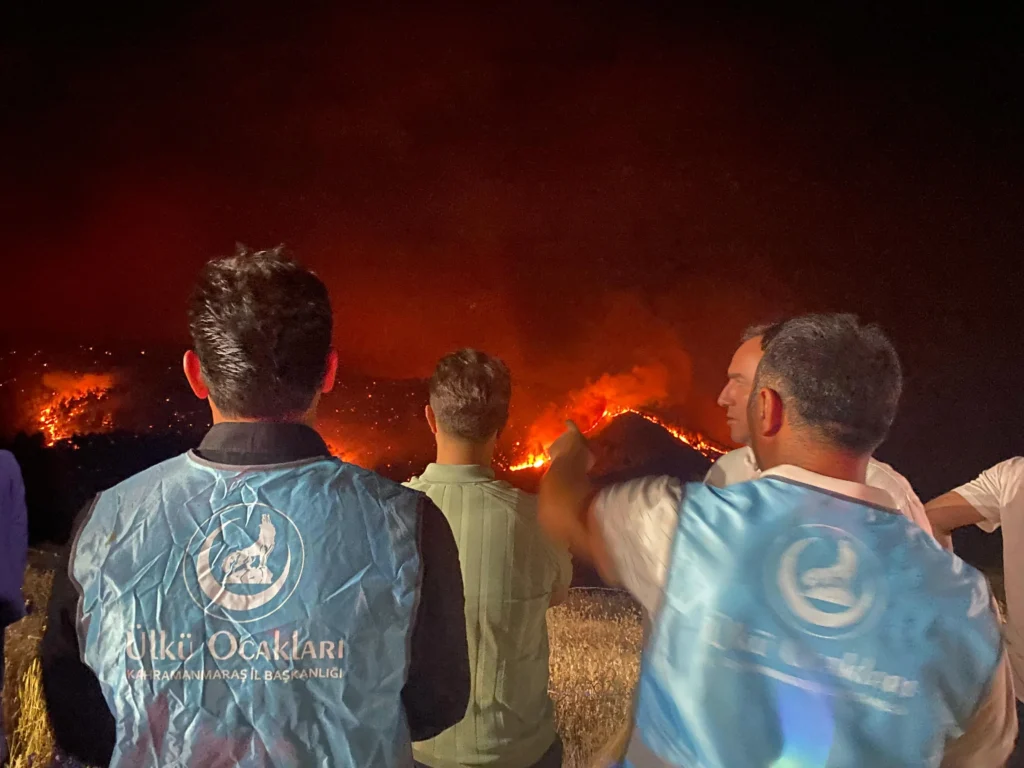 Kahramanmaraş İl Ocak Başkanı Ali Rıza Gedemenli yaptığı açıklamada şu ifadeleri kullandı: “Genel Başkanımız Sayın Ahmet Yiğit Yıldırım Beyefendi’nin emir ve talimatları doğrultusunda, Ülkü Ocakları olarak yangın bölgesine intikal ettik. Ateşin düştüğü her yere biz yüreğimizi koyarız. Çünkü bu vatan, yanan her ağacın, terleyen her alnın emanetidir. Yangınla mücadele eden tüm kahramanlarımıza minnettarız. Bu topraklarda nefes olan her çabanın, bu millet için yürek koyan her kahramanın yanındayız.”